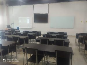 The rooms A.3.3 and A4.4 each have a capacity of 50 students with very complete lecture facilities. For presentation purposes, they are equipped with a 72″ LED television, 1 set of PCs, and 1 LCD projector unit. Additionally, these lecture rooms are equipped with very adequate audio facilities.