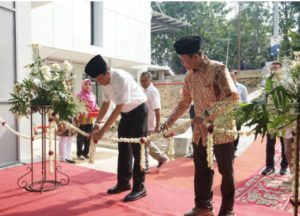 Cutting the ribbon for the inauguration of the Teaching Factory building by the Undip Chancellor and the Dean of the Vocational School